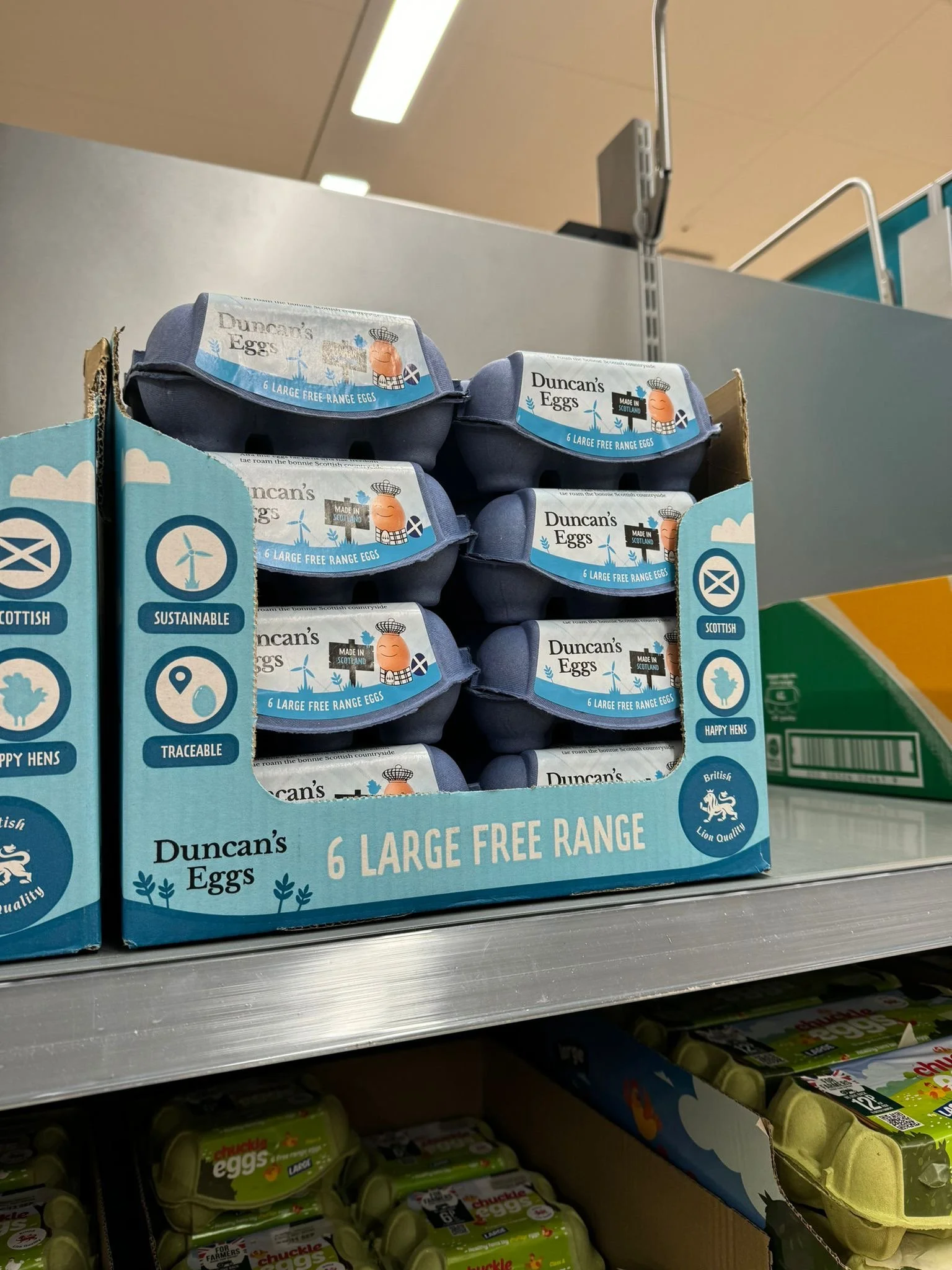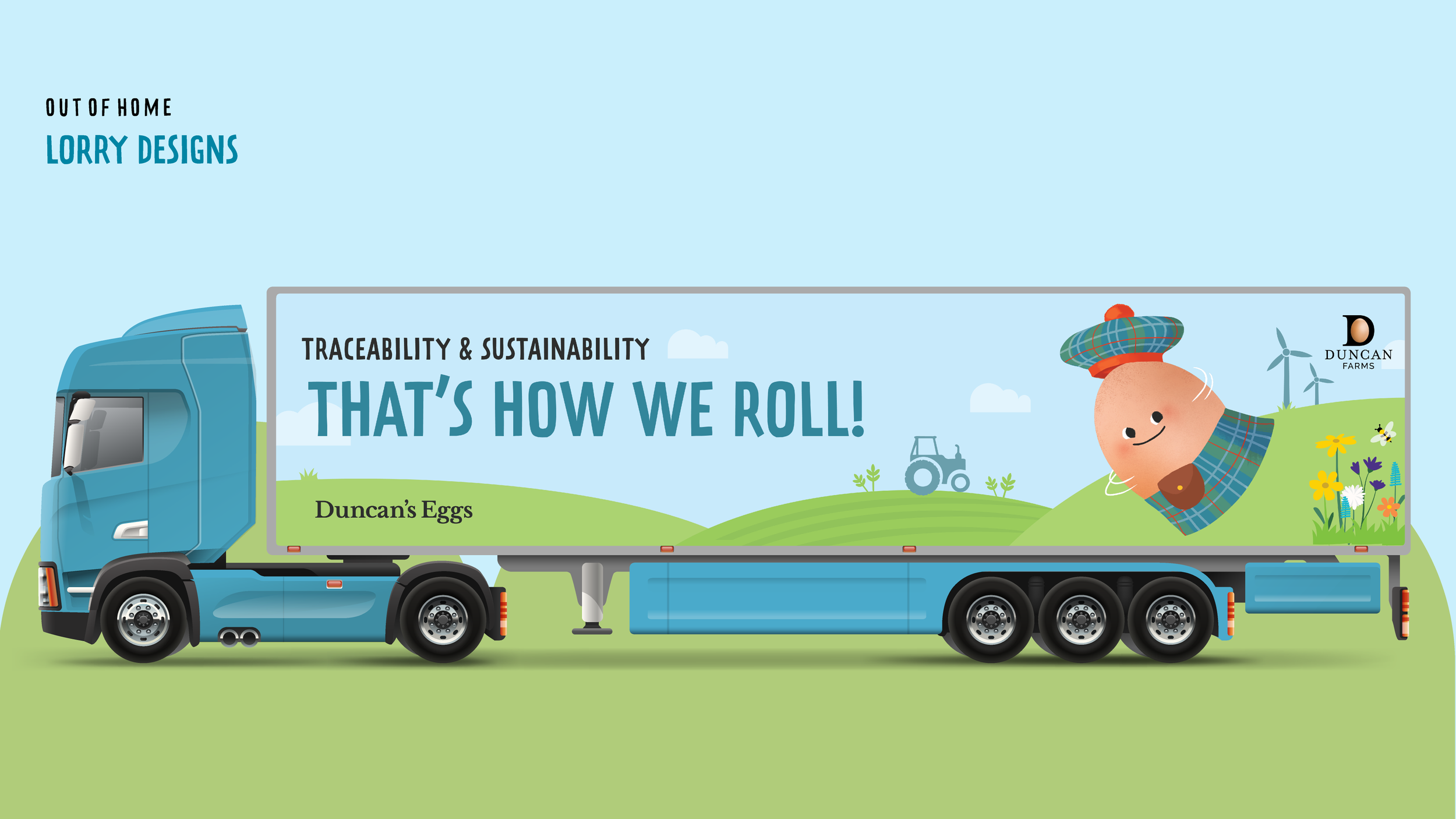 Below is a series of work produced for Duncan Farms to help promote their re-branded product, Duncan’s Eggs. I worked on creating social content and print designs such as lorry artwork, and the packaging design of storage boxes that the egg boxes sit in on the shelves of Morrisons.